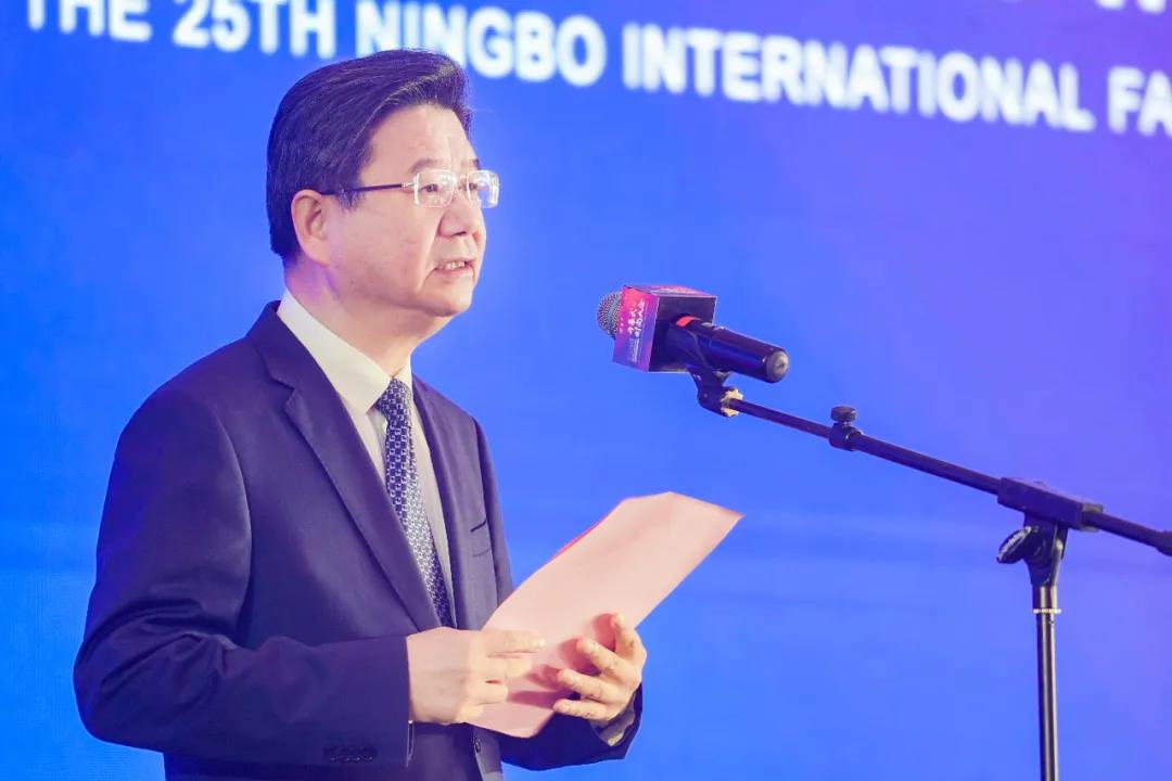浙江省委常委、寧波市委書記彭佳學(xué)宣布2021寧波時尚節(jié)暨第25屆寧波國際服裝節(jié)開幕。