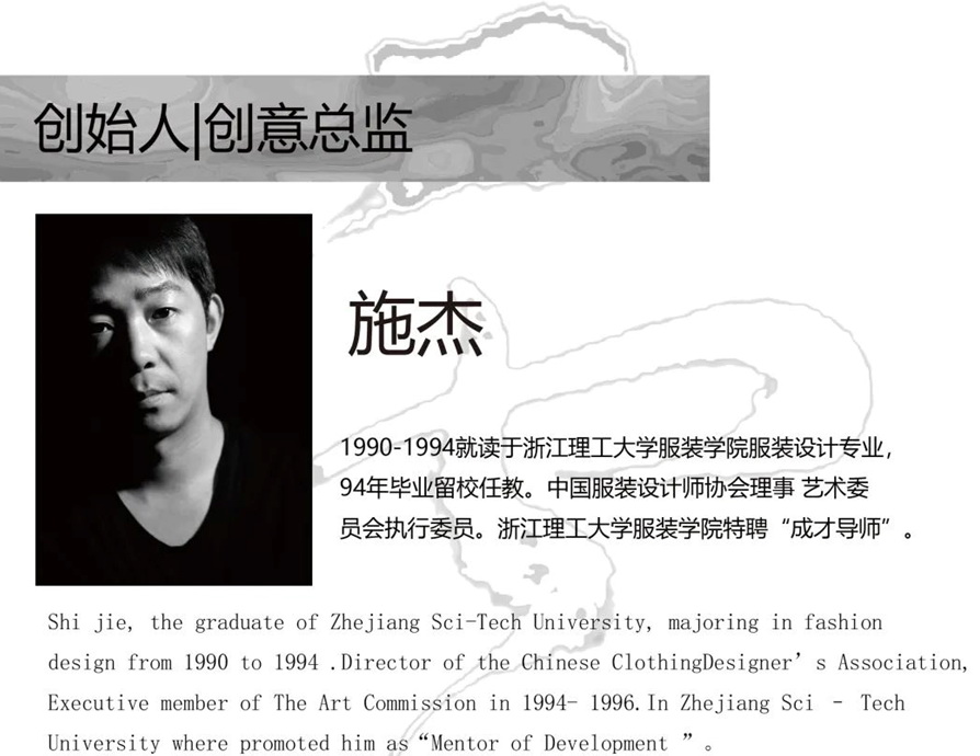 由中國十佳時裝設(shè)計師施杰創(chuàng)立,主要從事時尚創(chuàng)意設(shè)計,高級時裝品牌,限量高級定制,傳承與創(chuàng)新東方文化與工藝藝術(shù)為主旨。