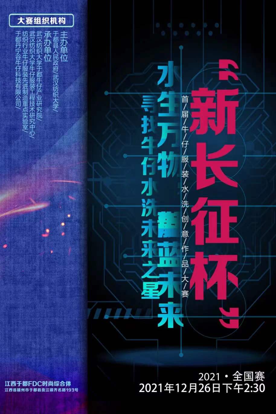 由于都縣人民政府、武漢紡織大學(xué)、紡織行業(yè)牛仔服裝先進(jìn)制造重點(diǎn)實(shí)驗(yàn)室聯(lián)合發(fā)起的,2021“新長(zhǎng)征杯”全國(guó)牛仔服裝水洗創(chuàng)意作品大賽在于都縣FDC時(shí)尚產(chǎn)業(yè)綜合體舉行。本次大賽的主題是“水生萬物 靛藍(lán)未來”。中國(guó)紡織工業(yè)聯(lián)合會(huì)科技部創(chuàng)新處處長(zhǎng)馮麗,武漢紡織大學(xué)副校長(zhǎng)唐敏先后在開幕式上致辭,于都縣委副書記郭書瓏,于都縣政協(xié)主席賴曉強(qiáng),于都縣委常委、副縣長(zhǎng)楊海峰以及鄧曉斌、藍(lán)淑娟等領(lǐng)導(dǎo)出席。