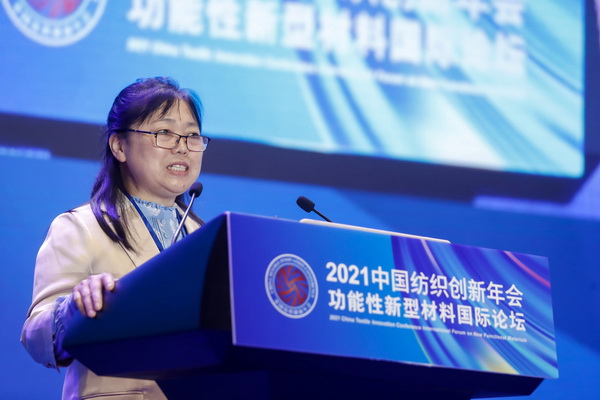 朱美芳院士在功能性新型材料國(guó)際論壇上作了《纖維新材料的創(chuàng)新發(fā)展與產(chǎn)業(yè)機(jī)遇》演講。她從纖維新材料的能量管理、綠色環(huán)保和健康時(shí)尚三個(gè)方面解讀纖維材料的功能化與智能化進(jìn)展,重點(diǎn)闡述了纖維從單純保暖到智能能量轉(zhuǎn)換存儲(chǔ)的纖維物理化學(xué)結(jié)構(gòu)演變過(guò)程,并提出纖維材料功能化、智能化、柔性化的發(fā)展方向。
