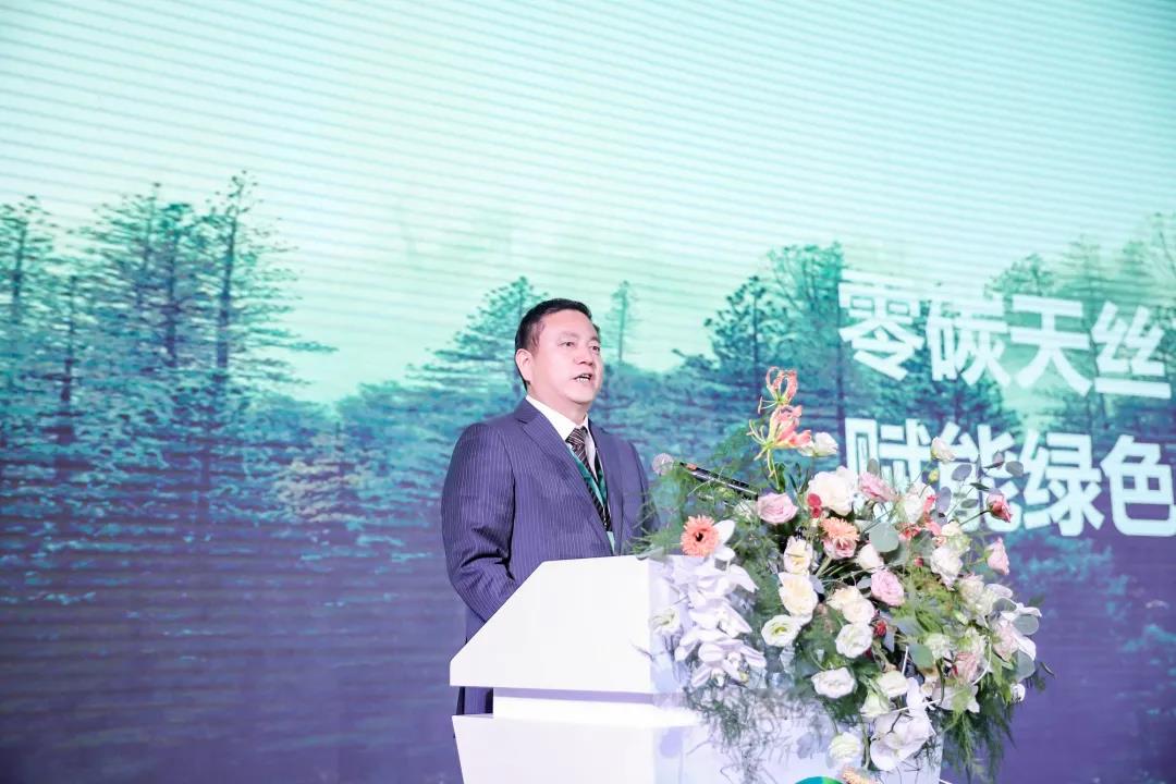 蘭精集團(tuán)中國(guó)區(qū)紡織事業(yè)部高級(jí)商務(wù)總監(jiān)戴富強(qiáng)作了《零碳天絲™賦能綠色生活時(shí)尚》主題演講。