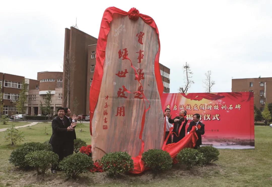 2011年,李啟涵以自己和妻子、女兒的名義 向?qū)幉ù髮W(xué)捐贈校訓(xùn)石碑