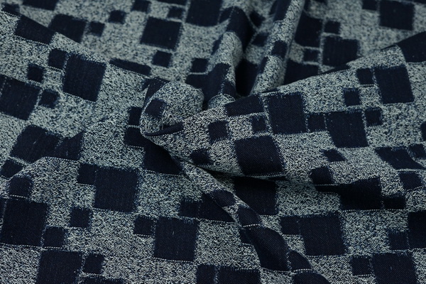點(diǎn)評:經(jīng)紗采用再生棉,緯紗采用羊絨和再生棉、再生滌綸混紡制成自絨花式紗(新型自有專利紡紗技術(shù)),面料無需抓毛即可自帶絨感;運(yùn)用茜草靛藍(lán)染色和低碳環(huán)保的自有BIGBOX染色技術(shù),通過大提花組織結(jié)構(gòu)設(shè)計,形成經(jīng)典幾何千鳥格圖案,打造牛仔風(fēng)格的雙面花呢,煥新經(jīng)典單品,傳遞健康而精致的時尚理念。