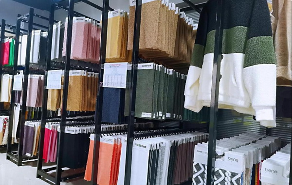 本意紡織科技自有織造及染整工廠,織機150余臺,日產量35噸。目前,除登山絨系列面料外,本意紡織科技多元化的產品矩陣還包括以基礎保暖功能主打的“雪尼爾一體絨”系列,面紗材質和滌綸纖維自由組合的“棉舒絨”系列,以及免去繁瑣拉毛環(huán)節(jié)的雙面絨系列等,各系列功能各異,豐富多元。