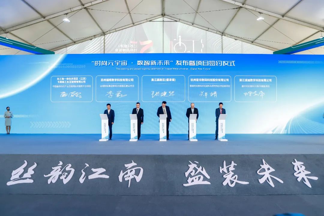 本次開幕式上還舉行了一系列儀式活動(dòng),包括東方杯·2023中國(guó)女裝設(shè)計(jì)大賽啟動(dòng)儀式、《蘇州市吳江區(qū)紡織行業(yè)雙碳目標(biāo)氣候創(chuàng)新行動(dòng)白皮書》發(fā)布儀式、盛澤與中國(guó)紡織工業(yè)聯(lián)合會(huì)共同設(shè)立中國(guó)紡織服裝行業(yè)首批“可持續(xù)創(chuàng)新辦公室”授牌儀式、“時(shí)尚元宇宙·數(shù)智新未來”發(fā)布暨項(xiàng)目簽約儀式、2023盛澤時(shí)尚周發(fā)布儀式等。