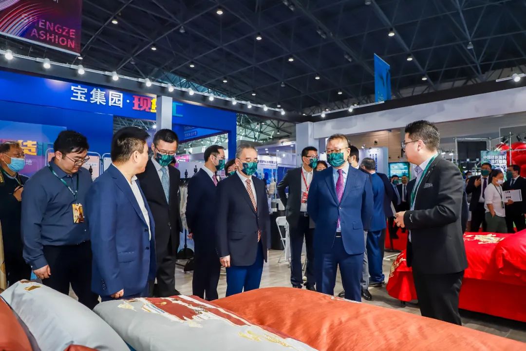 國(guó)際紡織制造商聯(lián)合會(huì)主席、中國(guó)紡織工業(yè)聯(lián)合會(huì)會(huì)長(zhǎng)孫瑞哲,中國(guó)紡織工業(yè)聯(lián)合會(huì)副會(huì)長(zhǎng)陳大鵬,中國(guó)紡織信息中心主任喬艷津,中國(guó)紡織工程學(xué)會(huì)理事長(zhǎng)伏廣偉,中國(guó)紡織規(guī)劃研究會(huì)會(huì)長(zhǎng)馮德虎,中國(guó)紡織工業(yè)聯(lián)合會(huì)社會(huì)責(zé)任辦公室主任閻巖,國(guó)家紡織產(chǎn)品開發(fā)中心主任李斌紅,江蘇省紡織工業(yè)協(xié)會(huì)會(huì)長(zhǎng)韓平,江蘇省紡織工業(yè)協(xié)會(huì)名譽(yù)會(huì)長(zhǎng)謝明,蘇州市委宣傳部副部長(zhǎng)、文明辦主任楊芳,吳江區(qū)人大常委會(huì)黨組書記盛紅明,吳江區(qū)委常委、副區(qū)長(zhǎng)、吳江高新區(qū)黨工委書記、盛澤鎮(zhèn)黨委書記、中國(guó)東方絲綢市場(chǎng)黨工委書記沈春榮,吳江區(qū)人大常委會(huì)副主任湯衛(wèi)明,吳江區(qū)人民政府副區(qū)長(zhǎng)孫俊良,吳江區(qū)政協(xié)副主席、區(qū)工商聯(lián)主席沈向東,盛澤鎮(zhèn)領(lǐng)導(dǎo)徐惠林、張建華、吳偉紅、鐘永林,盛虹控股集團(tuán)有限公司董事長(zhǎng)繆漢根等出席開幕式。