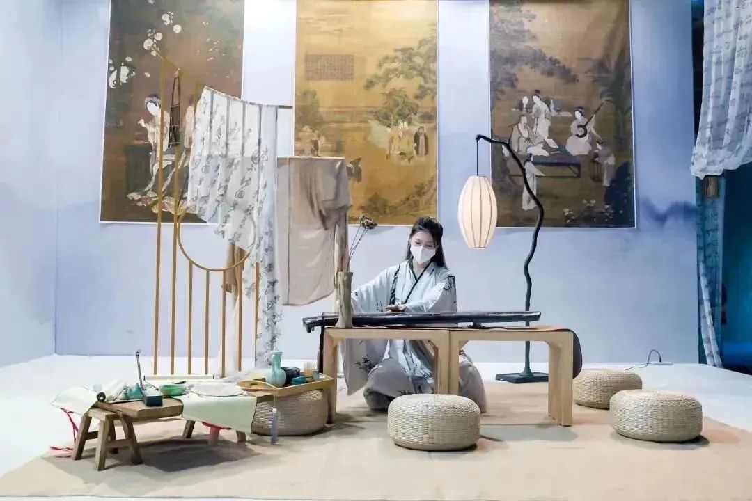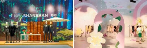 紅傳服飾則圍繞場(chǎng)景化成衣品牌choice-yin,以復(fù)古與時(shí)尚相結(jié)合的方式裝修整個(gè)展位,用宋韻美學(xué)風(fēng)格呈現(xiàn)表達(dá)華夏服飾文化特色。一塊布料詮釋紅傳“匠心”傳承,代表高風(fēng)亮節(jié)的竹子展示格物致知的場(chǎng)景展示,二者與紅傳服飾的陳列巧妙融合,幻化成人世間唯美的衣禮符號(hào)——良知·衣禮。