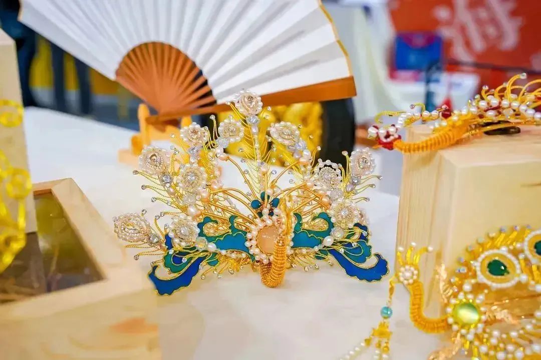 文化寧海展位圍繞“指尖上的紅妝”,陳列包含茶雕貼金、紅妝首飾、鳳冠霞帔、“泥金彩漆”“朱金漆木雕”和紅妝插畫文創(chuàng)等的傳統(tǒng)紅妝非遺產(chǎn)品。通過現(xiàn)代化的設(shè)計(jì)理念,盡顯地域文化風(fēng)采,既留住了老祖宗的根,又走在了時(shí)代前沿,用年輕多樣化的視角以“文創(chuàng)”理念續(xù)寫新的“紅妝”。