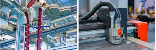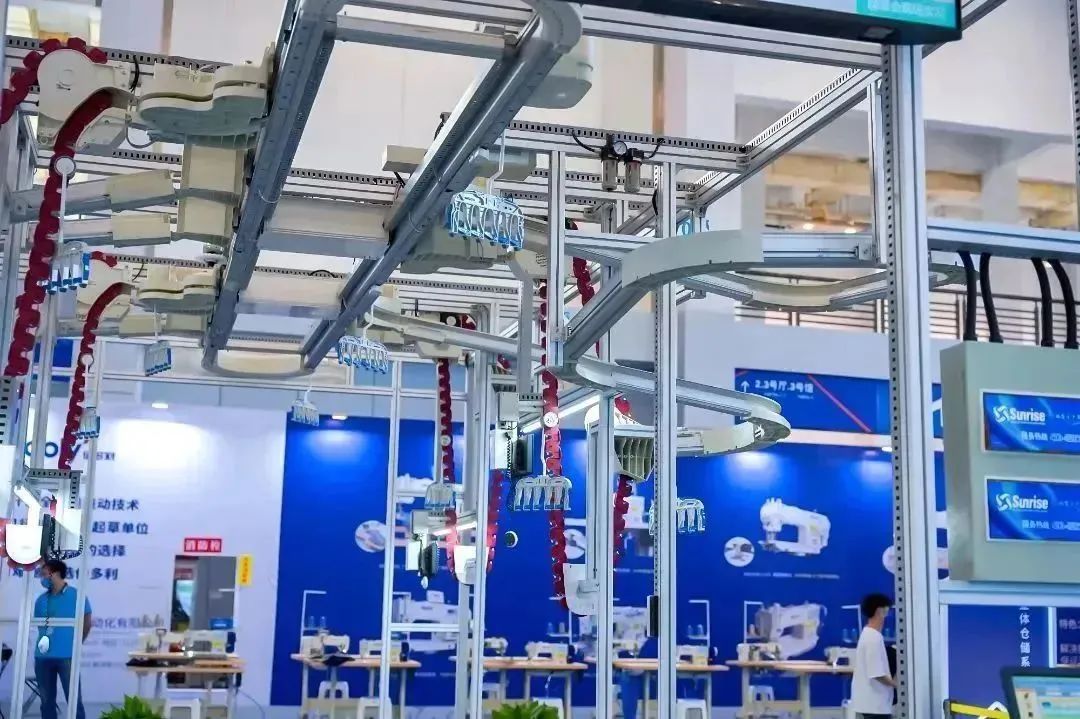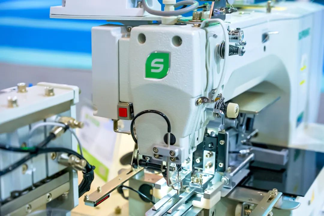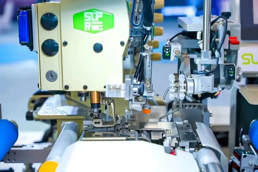 在智能化生產(chǎn)方面,國(guó)家級(jí)單項(xiàng)冠軍舒普科技可謂是當(dāng)仁不讓的佼佼者。今年時(shí)尚節(jié),他們依舊搬出了“大殺器”——智能制版機(jī),其最大的特點(diǎn)是可以自動(dòng)打出圓形弧度的線條。展位工作人員介紹,通常制版機(jī)都是在縱橫兩個(gè)坐標(biāo)軸上移動(dòng),當(dāng)要畫弧線時(shí)就需要人工干預(yù)。但舒普的機(jī)器真正實(shí)現(xiàn)了全自動(dòng)制版,只要將CAD設(shè)計(jì)圖紙輸入嵌入式軟件,無論是小半徑圓弧還是高精度圖案,機(jī)械臂都能帶動(dòng)走針一氣呵成。同時(shí),這臺(tái)設(shè)備還附加大量現(xiàn)成模版,不同款式一鍵制版成衣,連外行都能輕易上手。再比如能自動(dòng)編輯程序的橡皮筋縫合機(jī),能一次操作完成5件衣服熱感標(biāo)簽的5工位燙標(biāo)機(jī)……