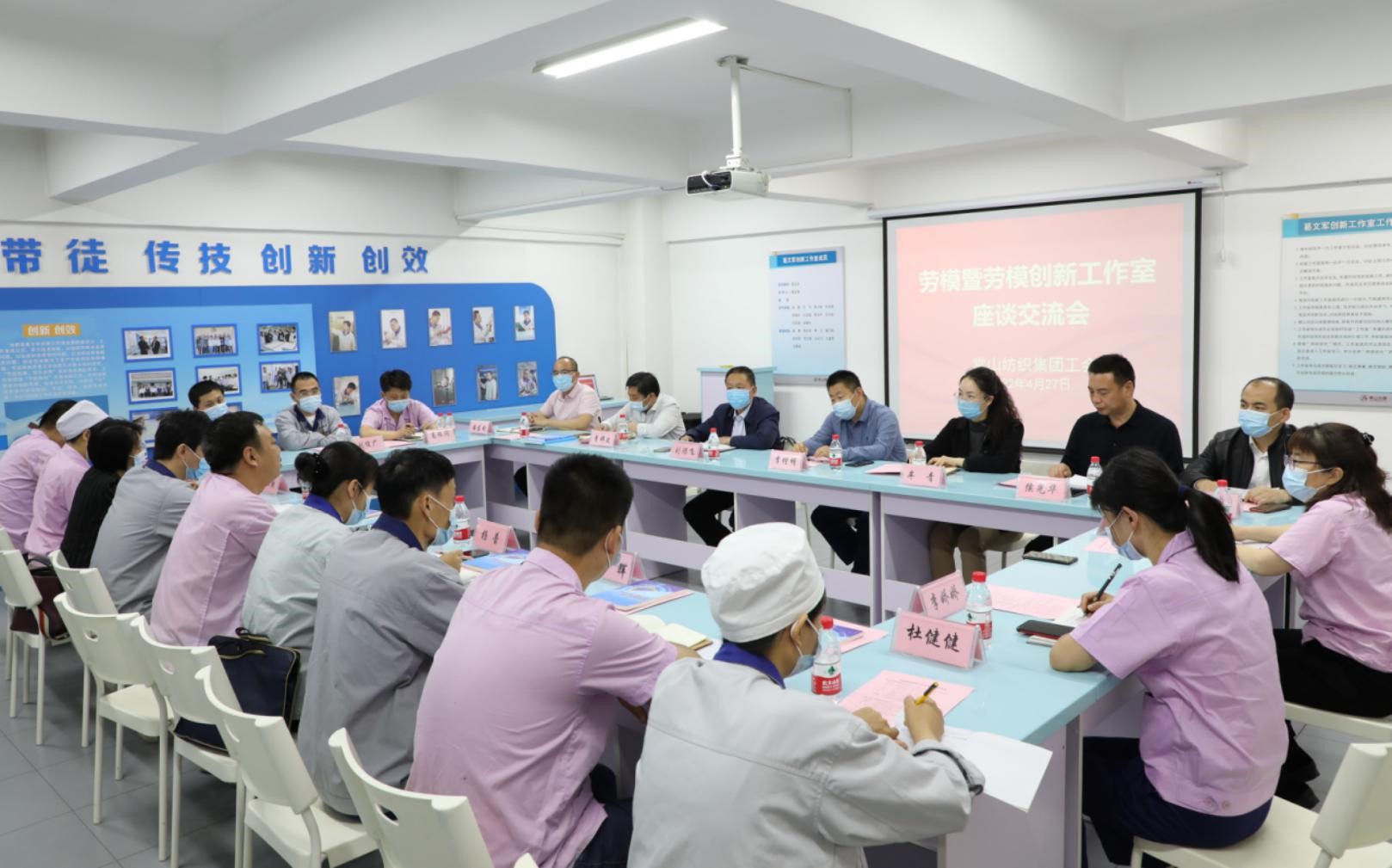 光榮屬于勞動者,幸福屬于奮斗者。4月27日,五一國際勞動節(jié)來臨之際,為進(jìn)一步弘揚(yáng)勞模精神、勞動精神和工匠精神,發(fā)揮勞模和勞模創(chuàng)新工作室?guī)絺骷?、?chuàng)新創(chuàng)效作用,引領(lǐng)廣大職工愛崗敬業(yè)、爭創(chuàng)一流,艱苦奮斗、勇于創(chuàng)新,淡泊名利、甘于奉獻(xiàn),石家莊常山紡織集團(tuán)工會組織的勞模暨勞模創(chuàng)新工作室交流座談會在恒盛紡織分公司葛文軍創(chuàng)新工作室圓滿召開。石家莊市紡織工會主席李增明、市紡織工會副主席牟青、常山紡織集團(tuán)董事劉保飛等領(lǐng)導(dǎo)出席會議,常山紡織集團(tuán)所屬企業(yè)有關(guān)領(lǐng)導(dǎo)和勞模代表、勞模創(chuàng)新工作室?guī)ь^人及骨干參加座談交流。會議由常山紡織集團(tuán)工會副主席侯光華主持。