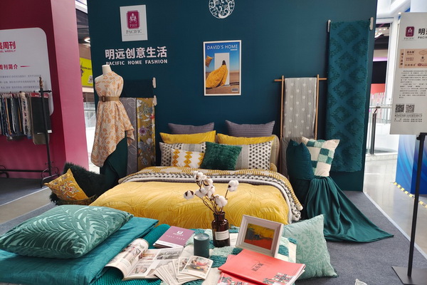 在明遠(yuǎn)創(chuàng)意生活的展臺(tái)中,一款款設(shè)計(jì)新穎的家紡產(chǎn)品讓人眼界大開(kāi)。面料手感柔滑,屬國(guó)內(nèi)首創(chuàng),很受現(xiàn)場(chǎng)觀眾青睞。