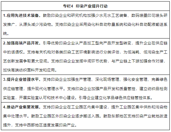 8.增強紡織產(chǎn)品印染加工環(huán)節(jié)的韌性和競爭力。優(yōu)化印染行業(yè)發(fā)展環(huán)境,支持印染企業(yè)開展智能化綠色化改造,減少能耗水耗及污染物排放,強化紡織產(chǎn)業(yè)體系完整優(yōu)勢和產(chǎn)業(yè)鏈發(fā)展韌性。
