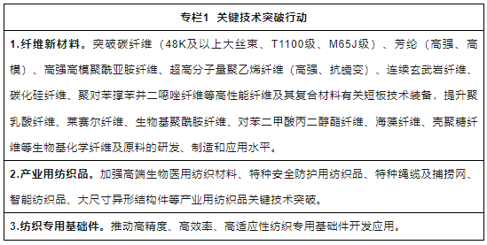 1.面向重大需求加強關(guān)鍵技術(shù)突破。鼓勵企業(yè)圍繞纖維新材料、功能性紡織品、智能制造裝備等領(lǐng)域加快研發(fā)創(chuàng)新,形成一批原創(chuàng)性、引領(lǐng)性技術(shù)成果。