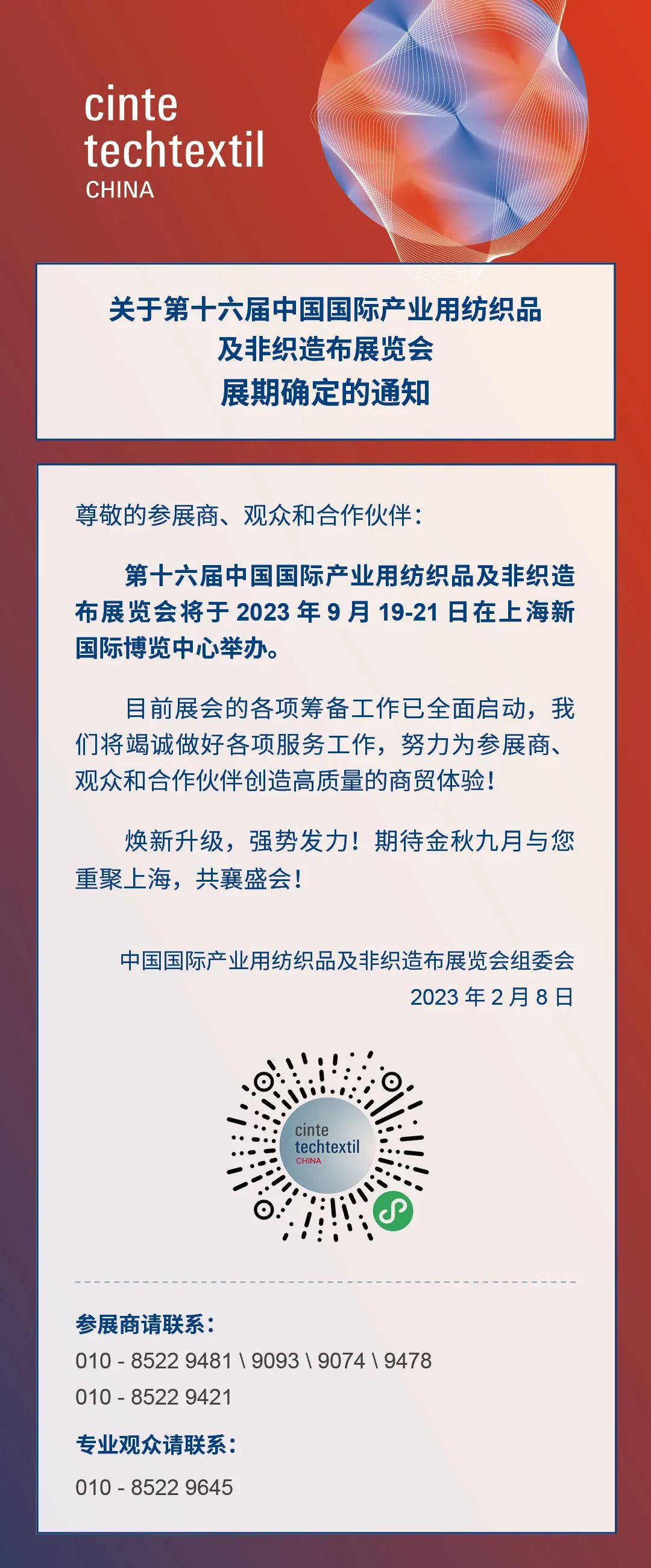 關(guān)于第十六屆中國國際產(chǎn)業(yè)用紡織品及非織造布展覽會展期確定的通知