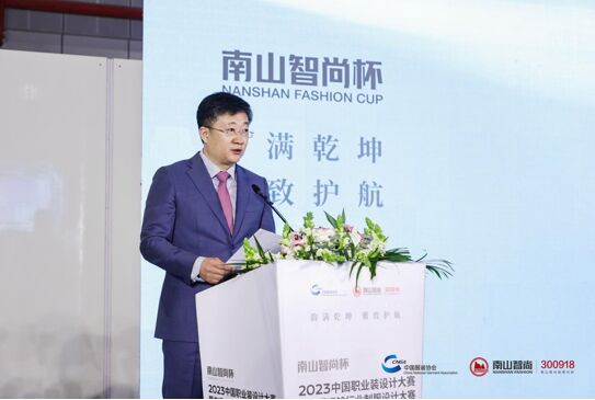 在全場嘉賓、業(yè)界同仁及媒體記者的見證下,國際紡聯(lián)主席、中國紡織工業(yè)聯(lián)合會會長孫瑞哲,中國紡織工業(yè)聯(lián)合會副會長、中國服裝協(xié)會會長陳大鵬,中國紡織工業(yè)聯(lián)合會社會責任辦公室主任、中國紡織信息中心黨委書記閻巖,中國服裝協(xié)會常務(wù)副會長楊金純,中國服裝設(shè)計師協(xié)會兼職副主席、中國時裝“金頂獎”獲得者武學(xué)凱,新南山國際董事長宋英豪,山東南山智尚科技股份有限公司董事長趙亮,山東南山智尚科技股份有限公司精紡公司總經(jīng)理劉剛中,山東南山智尚科技股份有限公司服飾公司總經(jīng)理王劍,南山集團長三角上??偛靠偛弥苡啦牛綎|省紡織服裝協(xié)會執(zhí)行會長劉建國,共同為“南山智尚杯” 2023中國職業(yè)裝設(shè)計大賽暨交通運輸行業(yè)制服設(shè)計大賽啟幕,釋放職業(yè)裝產(chǎn)業(yè)新活力及大賽新能量。