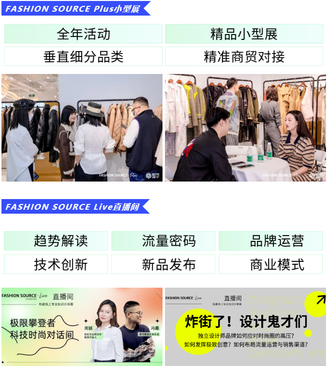 Fashion Source深耕產(chǎn)業(yè)二十余年,如今不僅只是紡織服裝行業(yè)上下游彼此互聯(lián)、獲取訂單的傳統(tǒng)展貿(mào)平臺(tái),更是引領(lǐng)產(chǎn)業(yè)趨勢(shì)、釋放前瞻訊號(hào)、扶持新銳力量、打造行業(yè)標(biāo)桿的全球性發(fā)布平臺(tái)。從展期延展至全年365天,F(xiàn)ashion Source將不斷推出系列精彩紛呈的活動(dòng),一切以實(shí)現(xiàn)高效商貿(mào)交流為目標(biāo),建立起以秀展聯(lián)動(dòng)、趨勢(shì)發(fā)布、論壇發(fā)聲、商貿(mào)配對(duì)、商業(yè)落地為核心的完整供應(yīng)鏈展會(huì)體系。