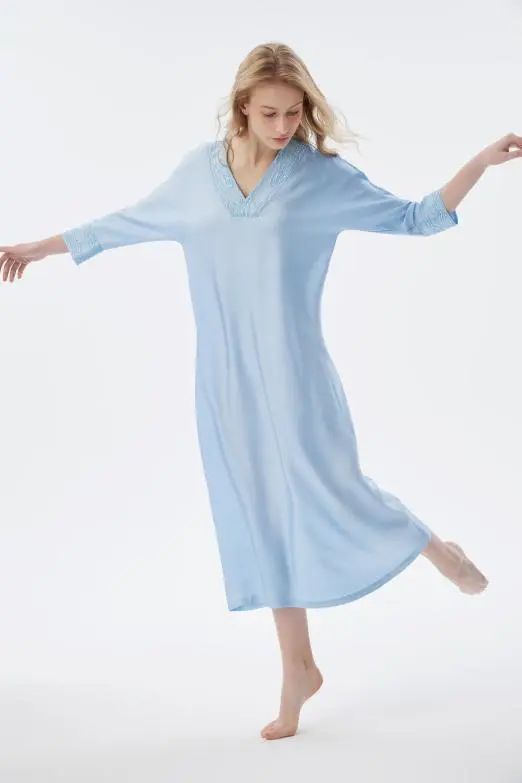 新品居家服同樣詮釋了CB的經(jīng)典之美以及中國韻國際化的設(shè)計理念,其中晴嵐系列的刺繡蕾絲更是把王希孟的千里江山圖紡織成刺繡蕾絲,與藍色的真絲材質(zhì)結(jié)合,符合當代人的生活方式,在家居時光中傳遞出山水之間,如詩如畫、呼吸純凈的美。