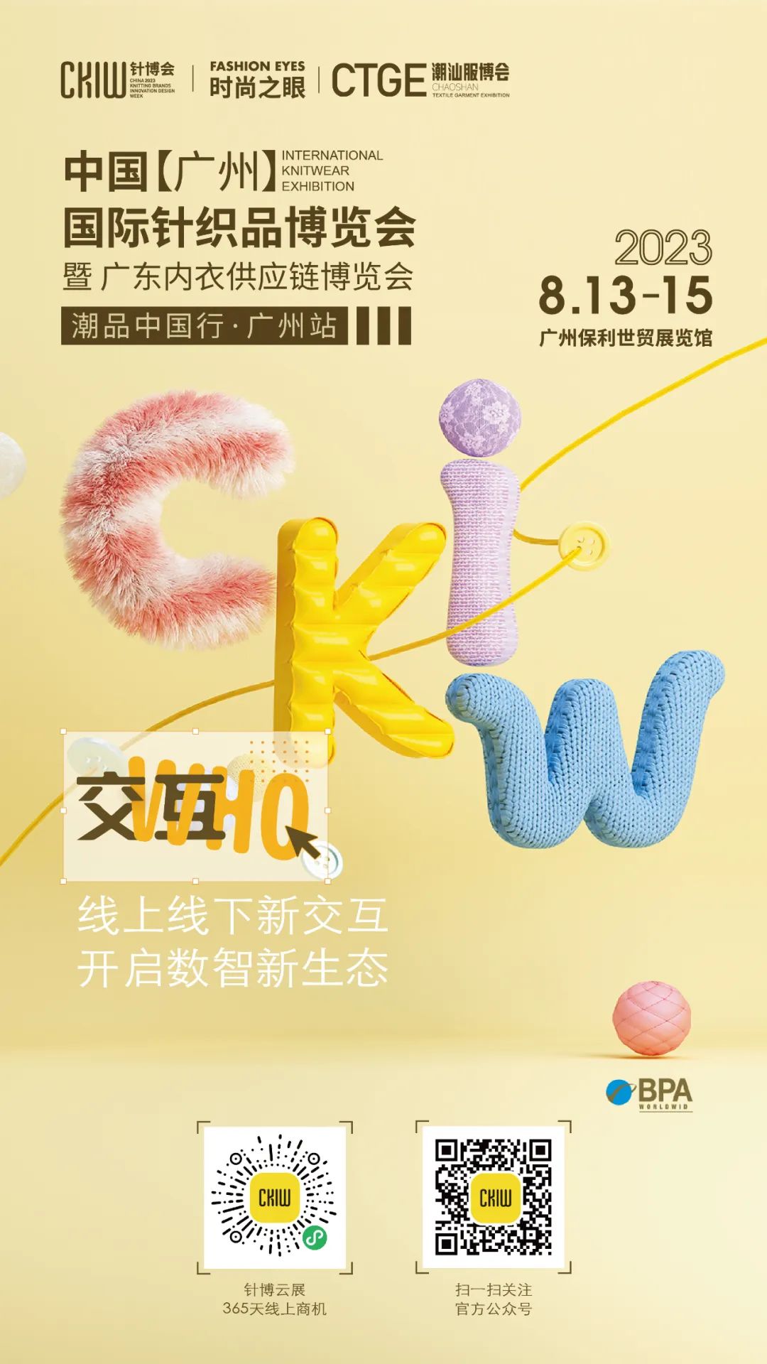 2023CKIW廣州國(guó)際針織品博覽會(huì)將于 2023年8月13-15日在廣州保利世貿(mào)博覽館舉辦 !