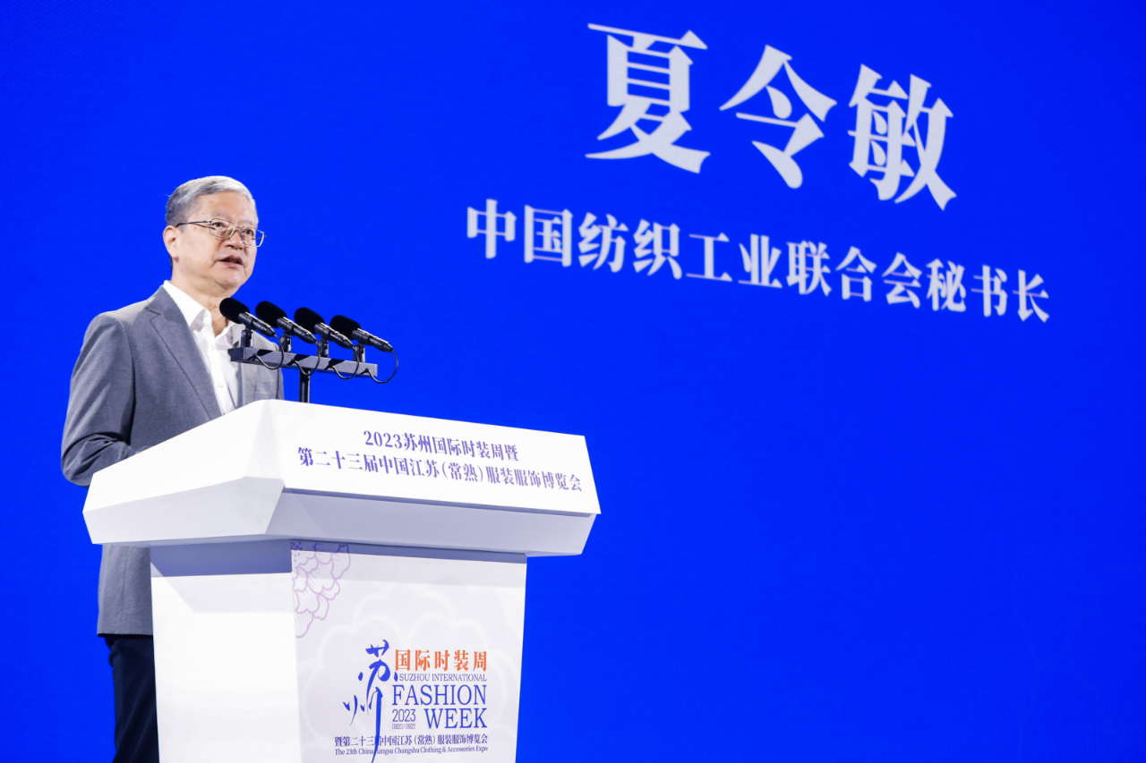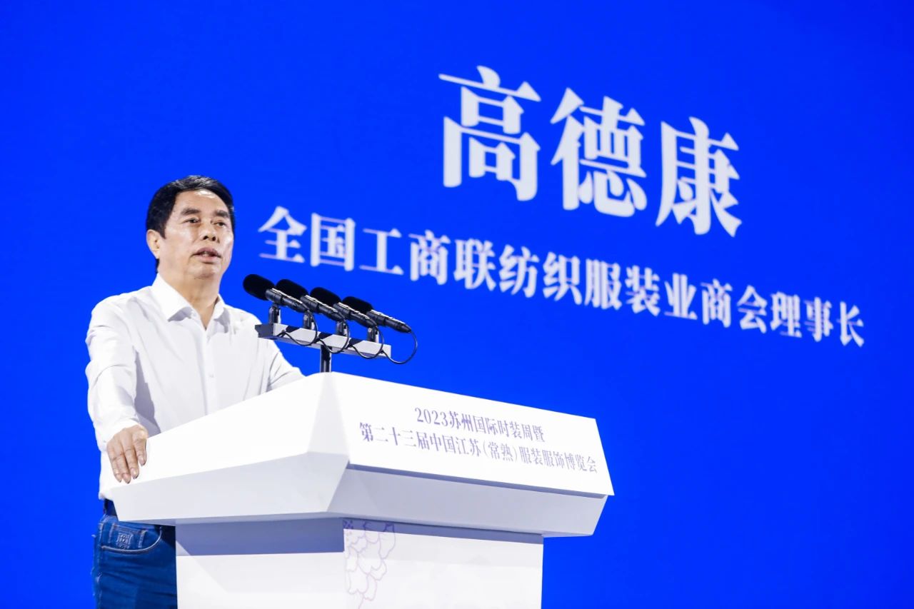 全國工商聯(lián)紡織服裝業(yè)商會理事長高德康在致辭中提到, 2023蘇州國際時裝周暨第二十三屆中國江蘇(常熟)服裝服飾博覽會的舉行,打造了行業(yè)資源匯聚、協(xié)同創(chuàng)新、融合發(fā)展的平臺,并以更加寬廣的眼光、更加開放的姿態(tài)、更加務(wù)實的舉措,讓本土紡織服裝品牌企業(yè)走出常熟、走出蘇州、走向世界。面向未來,他期待紡織服裝同仁攜手以共、相向而行,深入貫徹新發(fā)展理念,主動融入新發(fā)展格局,大力弘揚企業(yè)家精神,創(chuàng)造新引擎、發(fā)揮新動能、建立新賽道、匯聚新優(yōu)勢,推動產(chǎn)業(yè)高質(zhì)量發(fā)展再上新臺階,為形成一批知名跨國企業(yè)集團和有國際影響力的紡織服裝品牌,加快邁向全球價值鏈中高端而砥礪奮斗。