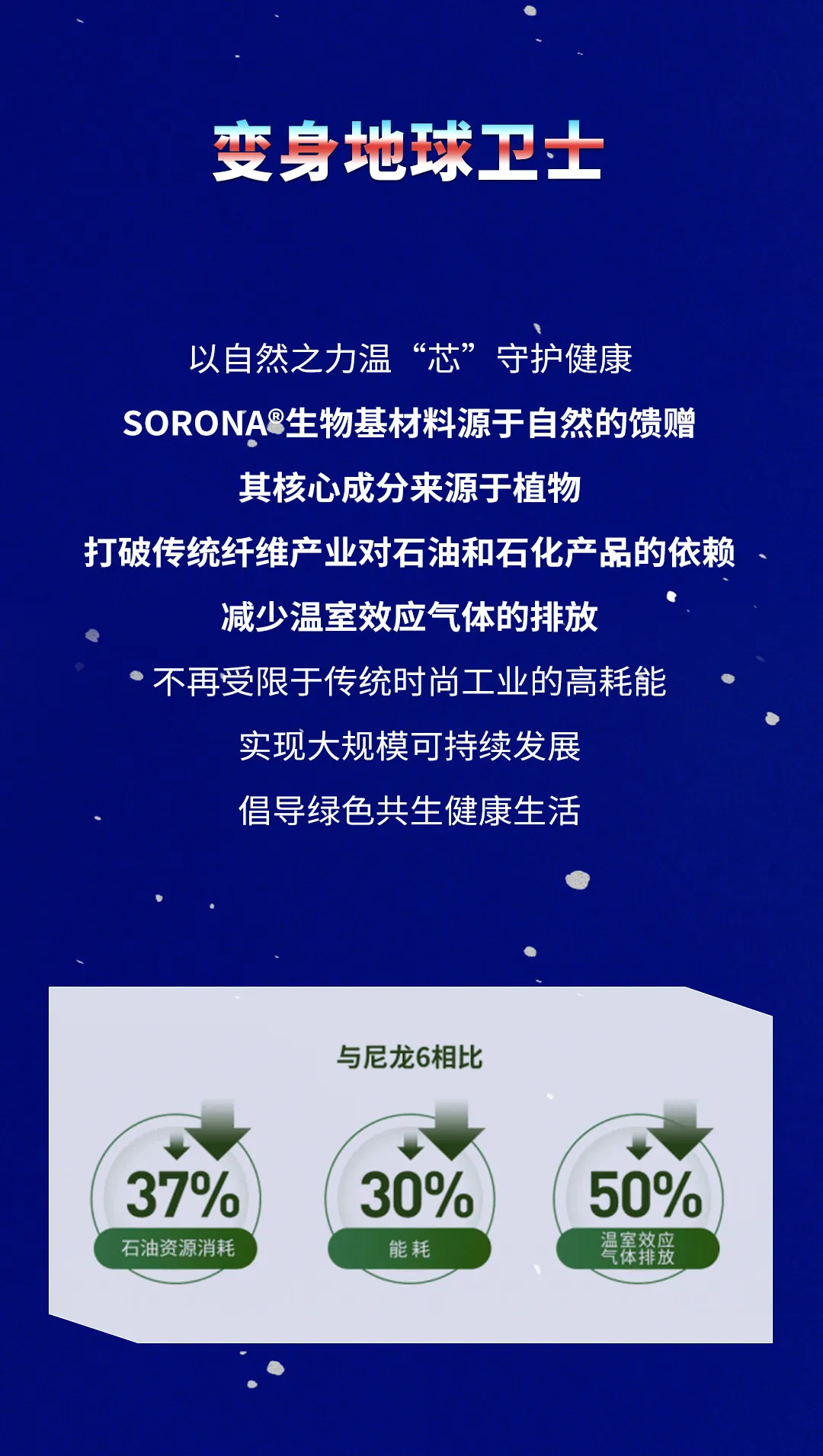 SORONA®是一項(xiàng)突破性的新型生物基聚合物解決方案,其核心原料來(lái)自每年可重復(fù)生長(zhǎng)的植物。SORONA®不僅具有符合潮流趨勢(shì)的可持續(xù)發(fā)展和環(huán)保主題,而且可以為纖維帶來(lái)多種功能的優(yōu)良特性。用SORONA®原料制成的纖維的“多功能性”為面料和服裝設(shè)計(jì)師提供了更大范圍的設(shè)計(jì)自由!