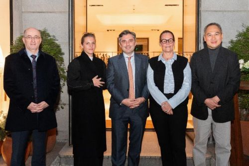 圖說:(從左至右)法國(guó)駐上海總領(lǐng)事館經(jīng)濟(jì)參贊穆西石先生,智奧會(huì)展大中華區(qū)總裁Inès Ginon女士,法國(guó)駐上??傤I(lǐng)事M. Joan Valadou 王度先生、Première Vision董事會(huì)主席Florence Rousson女士、之禾卡紛集團(tuán)創(chuàng)始人葉壽增先生
