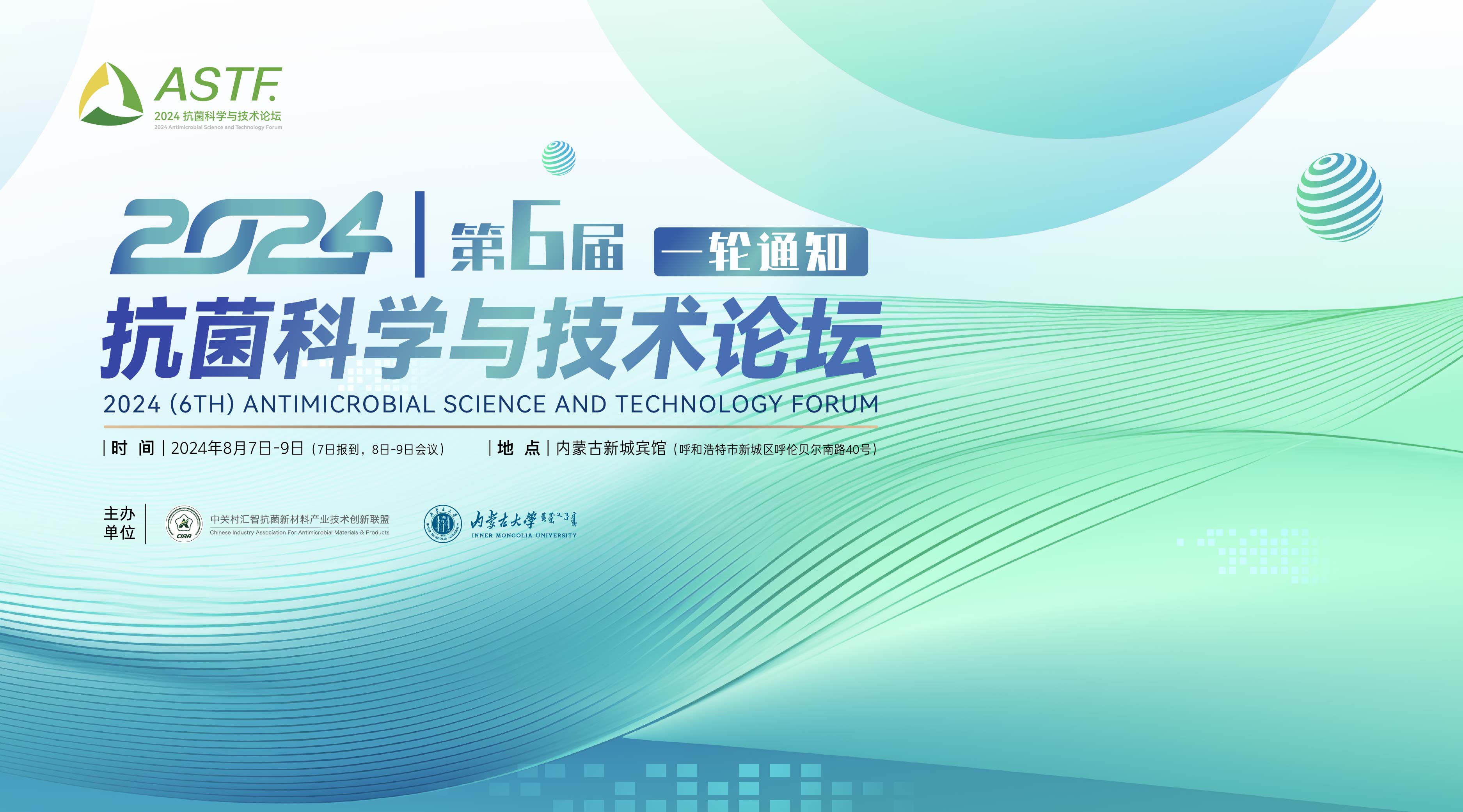 2024(第6屆)抗菌科學(xué)與技術(shù)論壇由中關(guān)智抗菌新材料產(chǎn)業(yè)術(shù)創(chuàng)聯(lián)盟、內(nèi)蒙古大學(xué)共同主,2024年8月7日-9日在呼和浩特。