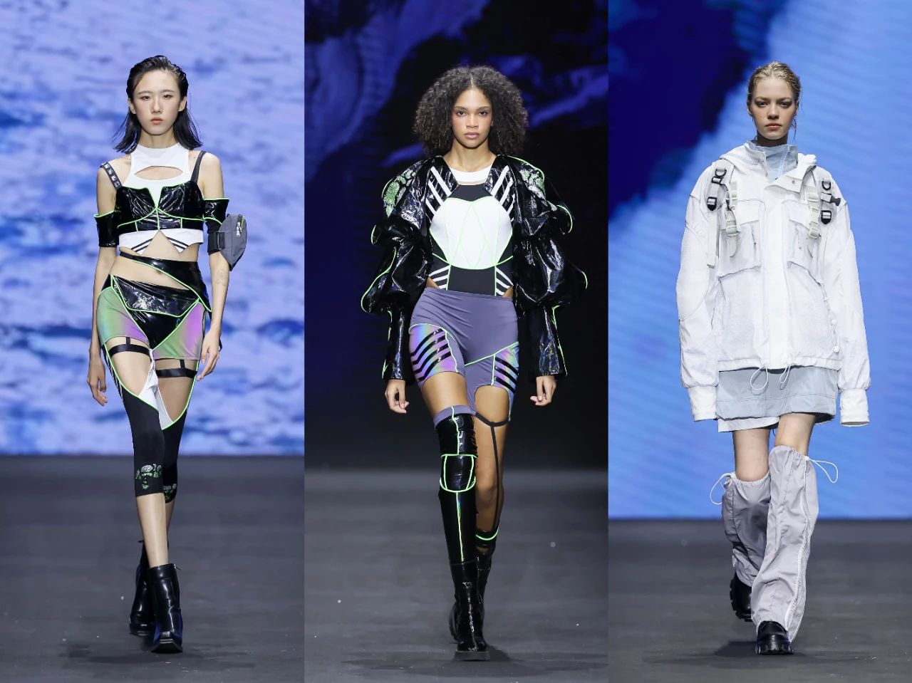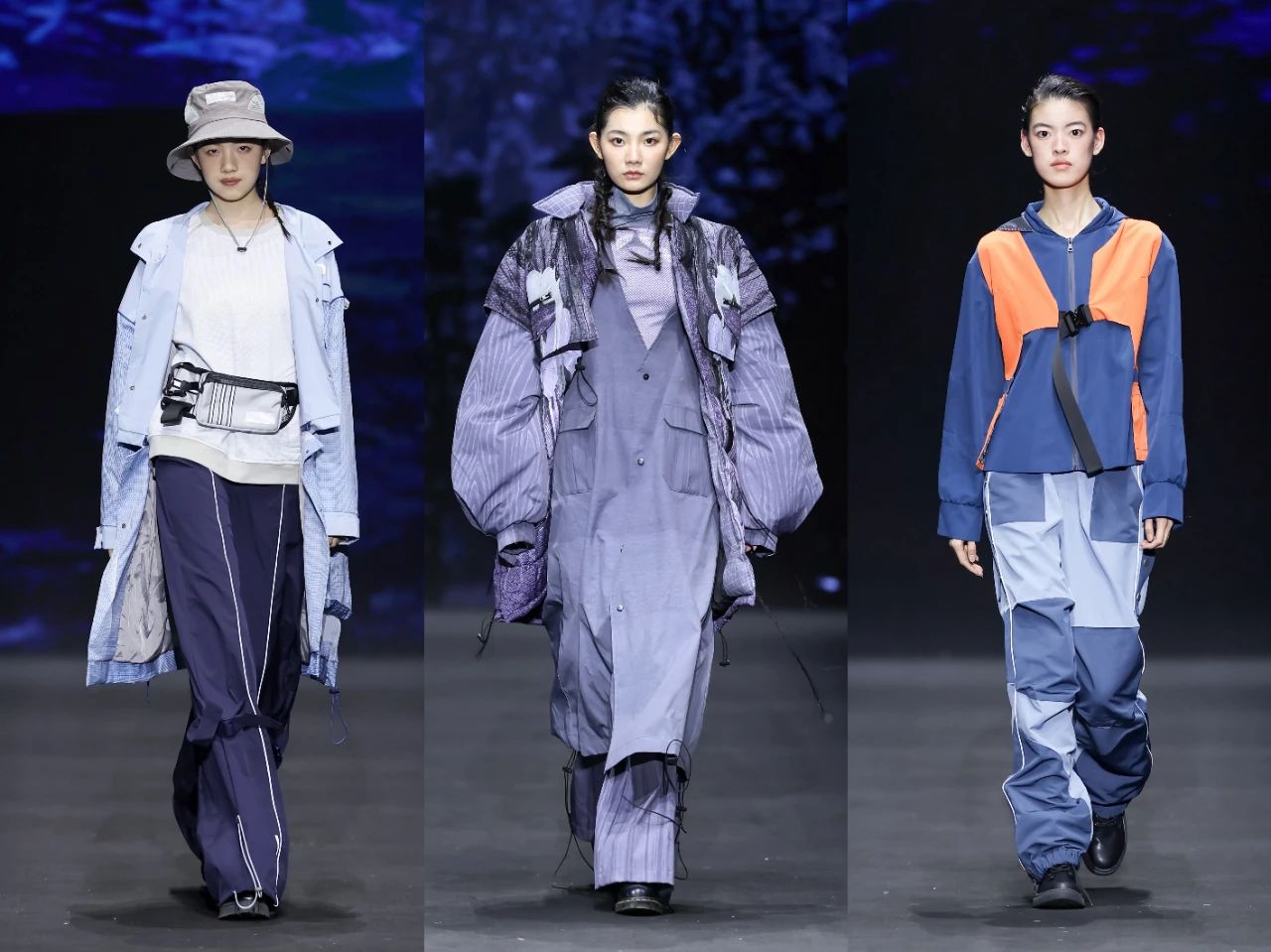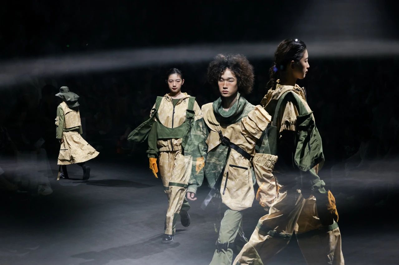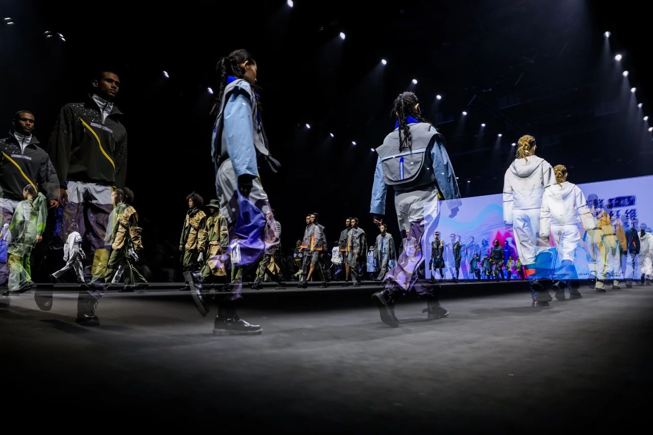首批入庫品牌發(fā)布之后,一場定位于“未來運動美學全景演繹”的泛運動超級大秀精彩上演。這場大秀匯聚了在首屆“千禧”杯服裝設計大賽中涌現(xiàn)出的60套優(yōu)秀設計作品。中國青年設計力量以多元化的運動項目為載體,融合攀巖、滑雪、徒步、露營、潛水、劍術等多種戶外體驗,通過前沿材料的創(chuàng)新應用,探索運動時尚的全新邊界,展示纖維材料在功能性、舒適性和創(chuàng)意表達上的無限可能。大秀從科技感和極限運動為主調的戶外探險拉開序幕,到動感與時尚的城市運動系列,再到輕松舒適的山野漫步系列,最后以充滿童趣的溫馨畫面結尾,也象征著未來的希望。