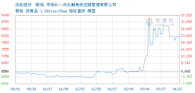12月10日新拓關(guān)于滌綸短纖的報(bào)價(jià)為6340元/噸。滌綸短纖的規(guī)格:新拓 優(yōu)等品 1.56dtex*38mm 熔體直紡 棉型 。該報(bào)價(jià)有效期為1天。報(bào)價(jià)提供方:河北觸角供應(yīng)鏈管理有限公司。