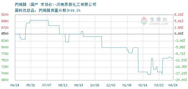 12月04日國產(chǎn)關(guān)于丙烯腈的報(bào)價(jià)為8000元/噸。丙烯腈的規(guī)格:國標(biāo)優(yōu)級(jí)品;丙烯腈質(zhì)量分?jǐn)?shù)≥99.5%。該報(bào)價(jià)有效期為3天。報(bào)價(jià)提供方:濟(jì)南昂新化工有限公司。