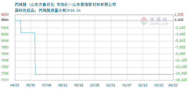 12月08日山東齊魯石化丙烯腈為7200元