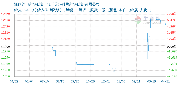 12月08日紅華紡織32S滌綸紗為11410元