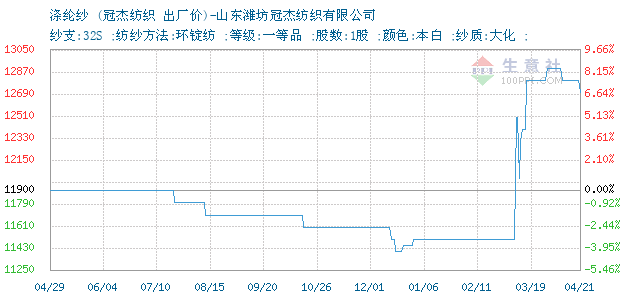 12月08日冠杰紡織32S滌綸紗為11600元