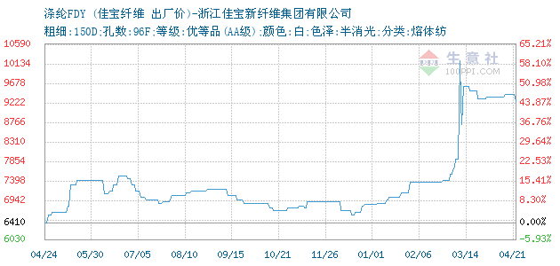 12月08日浙江佳寶新纖維集團(tuán)有限公司關(guān)于滌綸FDY的報(bào)價(jià)為6710元/噸。滌綸FDY的規(guī)格:粗細(xì):150D;孔數(shù):96F;等級(jí):優(yōu)等品(AA級(jí));顏色:白;色澤:半消光;分類:熔體紡。該報(bào)價(jià)有效期為7天。報(bào)價(jià)提供方:浙江佳寶新纖維集團(tuán)有限公司。