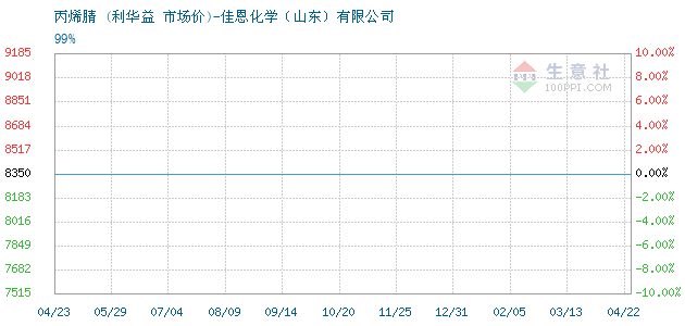 12月09日利華益關(guān)于丙烯腈的報價為8350元/噸。丙烯腈的規(guī)格:99%。該報價有效期為3天。報價提供方:佳恩化學(xué)(山東)有限公司。