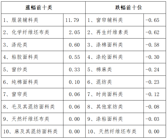 三、服裝面料環(huán)比回縮,價格指數環(huán)比小跌