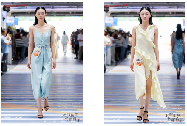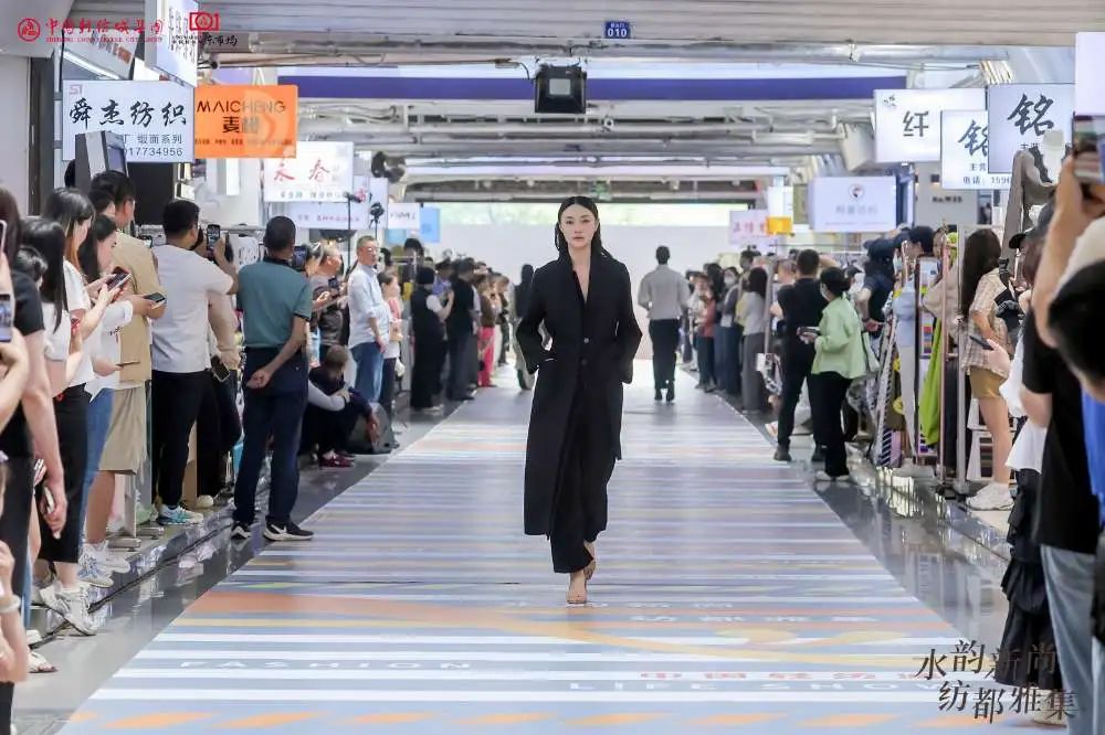 本次活動(dòng)以“水韻紡都”為魂,涵蓋面料雅集、國際設(shè)計(jì)師聯(lián)名秀、旗艦經(jīng)營戶成衣發(fā)布、成衣靜態(tài)展及全天候?qū)由除埖榷嘣瘎?chuàng)新形式?;顒?dòng)現(xiàn)場,法國設(shè)計(jì)師聯(lián)袂東市場商戶閃亮登場,前沿時(shí)尚潮流涌動(dòng),水岸T臺(tái)縱穿整個(gè)東市場主通道,重構(gòu)紡織商貿(mào)新體驗(yàn),盡顯中國輕紡城東市場作為“中國時(shí)尚女裝面料第一站”的品牌影響力和時(shí)尚引領(lǐng)力。