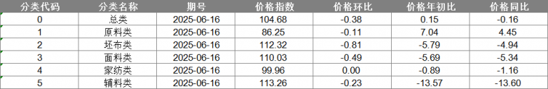 中國·柯橋紡織指數(shù)|20250616期價格指數(shù)