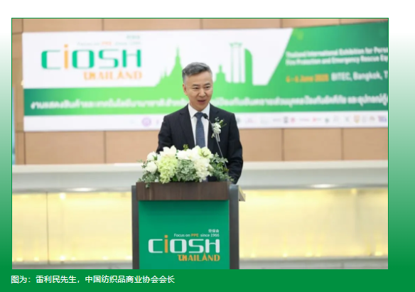 中國紡織品商業(yè)協(xié)會會長雷利民先生強(qiáng)調(diào)東南亞市場的戰(zhàn)略地位:“泰國在亞洲工業(yè)價值鏈中扮演核心角色。作為‘21世紀(jì)海上絲綢之路’的關(guān)鍵樞紐,泰國是勞保會海外發(fā)展戰(zhàn)略的首站。泰國勞保會通過搭建優(yōu)質(zhì)PPE采購渠道、提供專業(yè)洞見及協(xié)作學(xué)習(xí)平臺,為本地企業(yè)與安全從業(yè)者創(chuàng)造了協(xié)同發(fā)展的核心價值。”