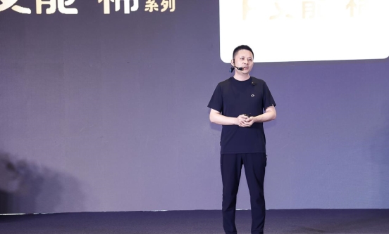 發(fā)布會現(xiàn)場,金太陽品牌與市場中心總監(jiān)李斌先生隆重發(fā)布2026春夏科技面料新品。