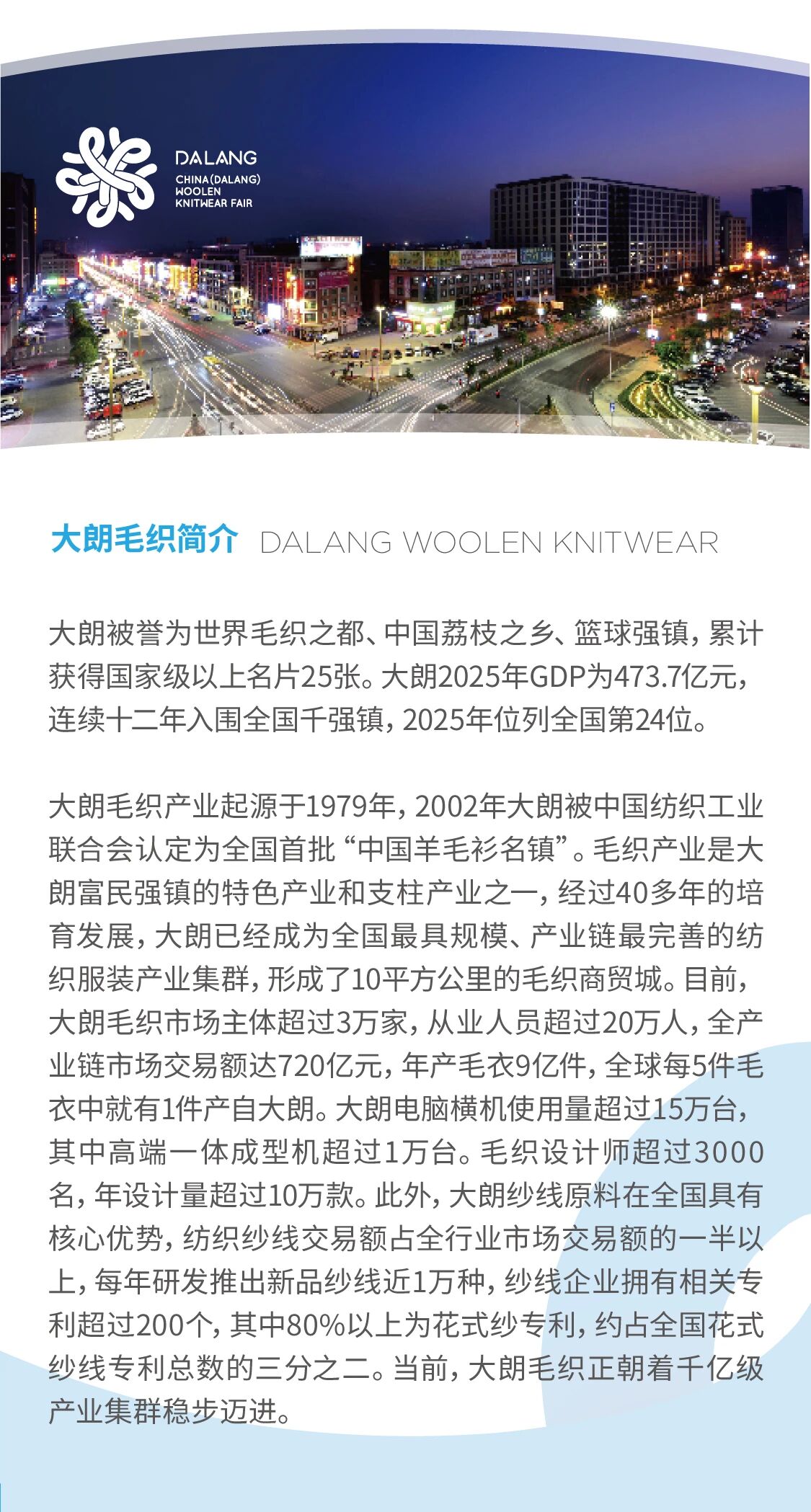 2026年第二十三屆中國(大朗)毛織產品交易會(簡稱“織交會”)將于6月24日至26日在大朗毛織貿易中心舉辦!