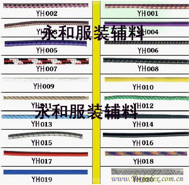 主營(yíng)產(chǎn)品: 繩類:棉繩,PP繩,POLY繩,鞋繩,扁繩,蠟繩,針通繩,橡筋繩,手機(jī)繩,帶類:棉帶,腰帶,人字帶,滌綸帶,三色帶,平紋帶,珠帆帶,松緊帶,通芯帶,子母帶,印花帶,提花帶