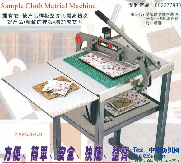 ▲該機(jī)可廣泛應(yīng)用于棉、毛、絲、麻、化纖等各類紡織品的裁切,適于制作各種形式的樣品卡、色卡、吊卡、西褲的褲腳切邊,皮革、禮品行業(yè)加工牙邊制品等。