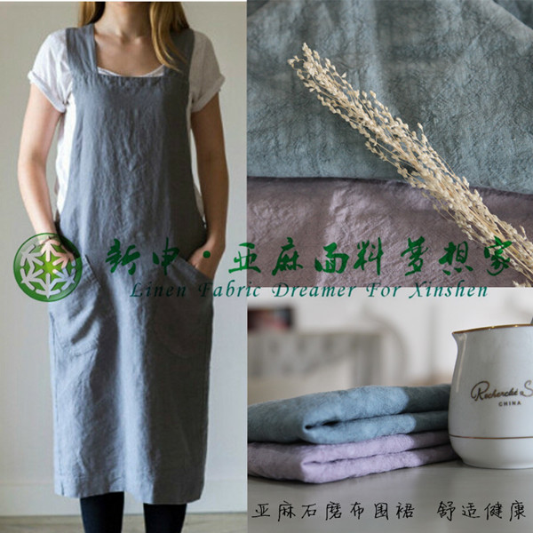 純亞麻石磨布圍裙面料 潮流石磨布亞麻面料