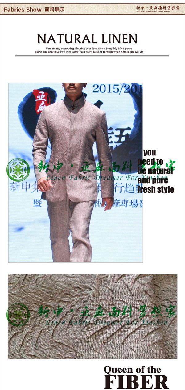 亞麻壓皺淺色男裝面料 時(shí)尚簡約的亞麻面料