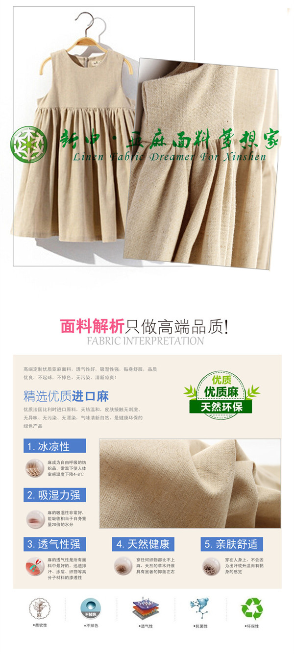 亞麻雨露麻童裝裙子面料舒適抑菌的天然亞麻