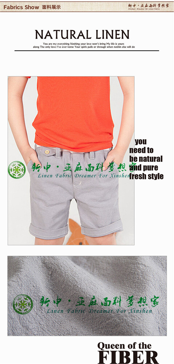 時(shí)尚潮流純亞麻男童短款、休閑5分中褲面料