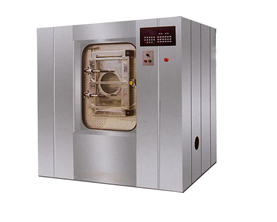 凈區(qū)兩個(gè)獨(dú)立的操作區(qū)間。洗滌物由位于非潔凈區(qū)一側(cè)的機(jī)門裝入,洗滌完畢后從位于潔凈區(qū)一側(cè)的機(jī)門取出。防止洗滌物由于從非潔凈區(qū)裝卸和出料引起的交叉污染,是無塵工業(yè)和醫(yī)院洗衣房的理想解決方案。首先,從設(shè)備上采取背靠背的兩道機(jī)門,使污染布草的裝載和潔凈布草的卸載從不同的兩個(gè)門進(jìn)出,從源頭上避免交叉感染; 其次,衛(wèi)生隔離式洗脫機(jī)由于使用了隔離式洗脫機(jī),使加裝中間隔離墻成為可能,從而實(shí)現(xiàn)了污染區(qū)和潔凈區(qū)等各功能區(qū)的劃分,徹底阻斷了二次污染的產(chǎn)生; 第三,潔凈區(qū)與污染區(qū)人員與用具的獨(dú)立配置,布草的單向流動(dòng),加上空氣的負(fù)壓流動(dòng)設(shè)計(jì),更為徹底的避免了二次污染。
