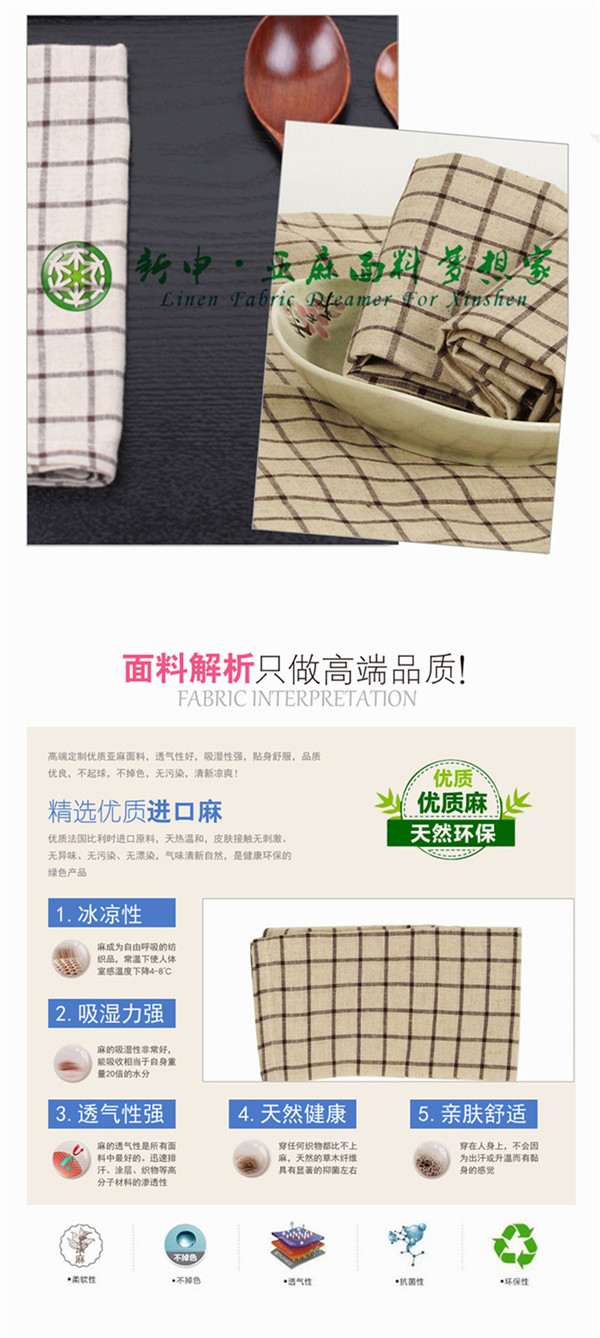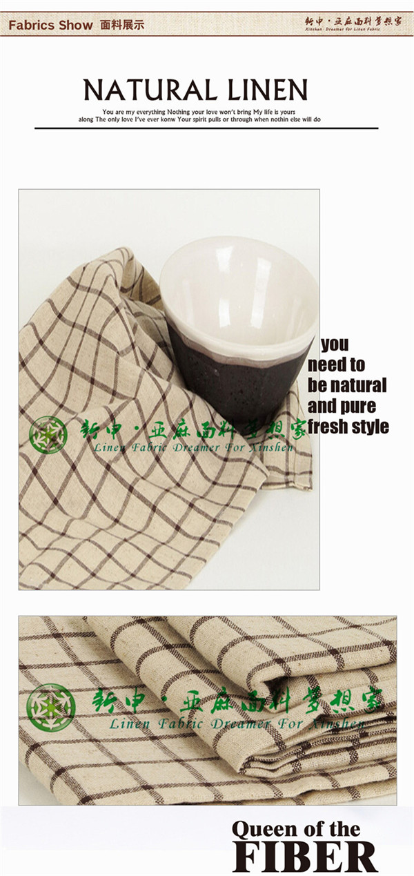 純亞麻棕色格子餐巾布布藝面料 自然抑菌