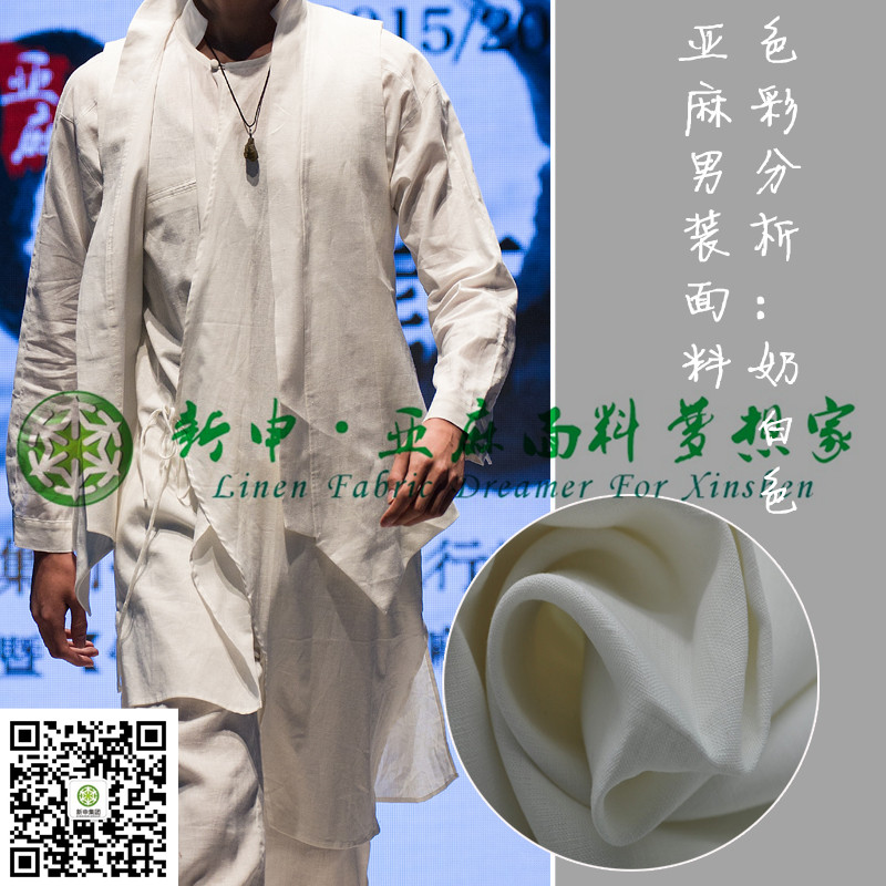 純亞麻男式新中裝流行趨勢(shì)面料奶白色