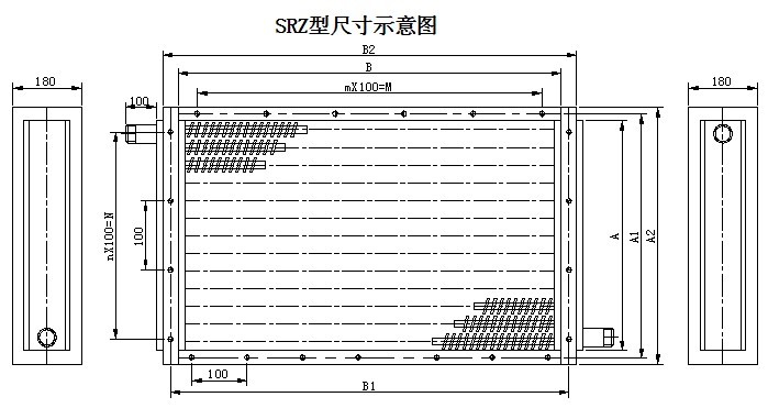 SRZ型散熱器的熱介質(zhì)壓力在2.2Mpa以下,溫度在350℃以內(nèi)。散熱管與散熱片是經(jīng)專用繞片機(jī)繞制而成的,接觸緊密而穩(wěn)定,傳熱性能良好,耐腐蝕,使用壽命長,外形美觀,易于安裝,便于管理。